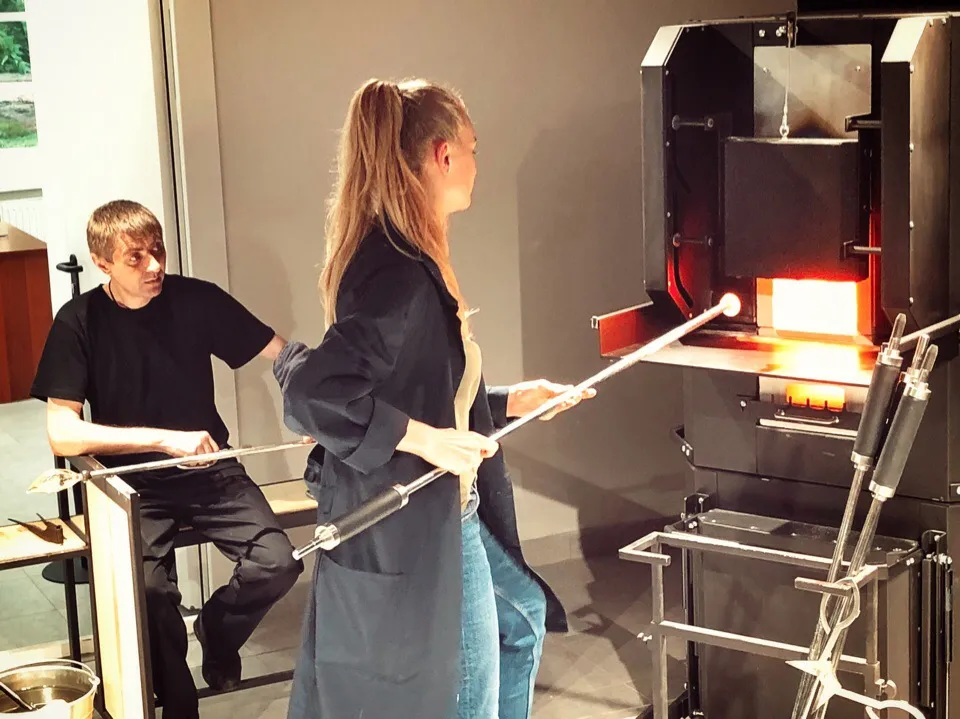 - Творите вместе с мастерами Попробуйте создать простую стеклянную форму под руководством опытных художников. Почувствуйте себя творцом, покоряющим стихию и создающим красоту своими руками.