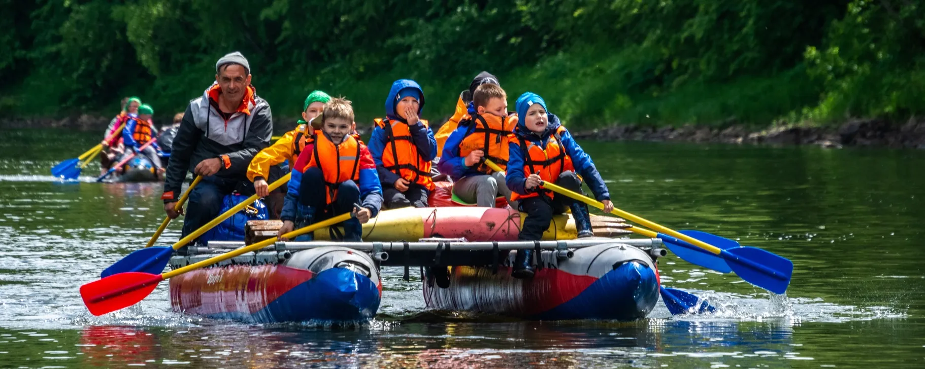 • 12:40 — Речное путешествие начинается Сплав по реке — это не просто прогулка, а настоящее водное приключение! Вас ждут живописные пейзажи, новые ракурсы и ощущение свободы на воде.